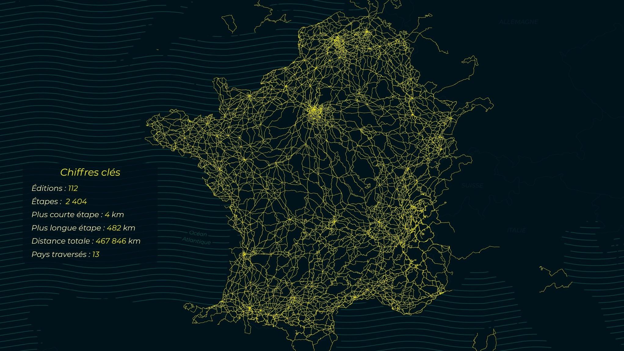 - 2.404 étapes, 467.846 km et 20.700 communes traversées... Il met cinq ans pour dessiner la carte des 112 tracés du Tour de Franceon 20 novembre 2025 at 6 h 00 min